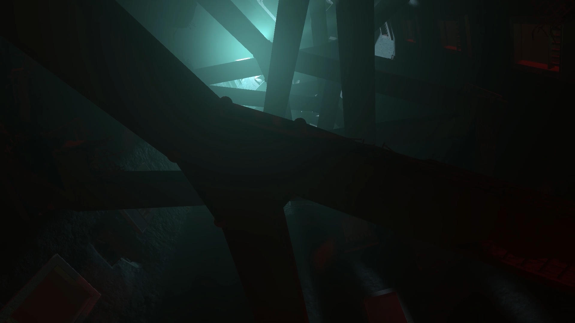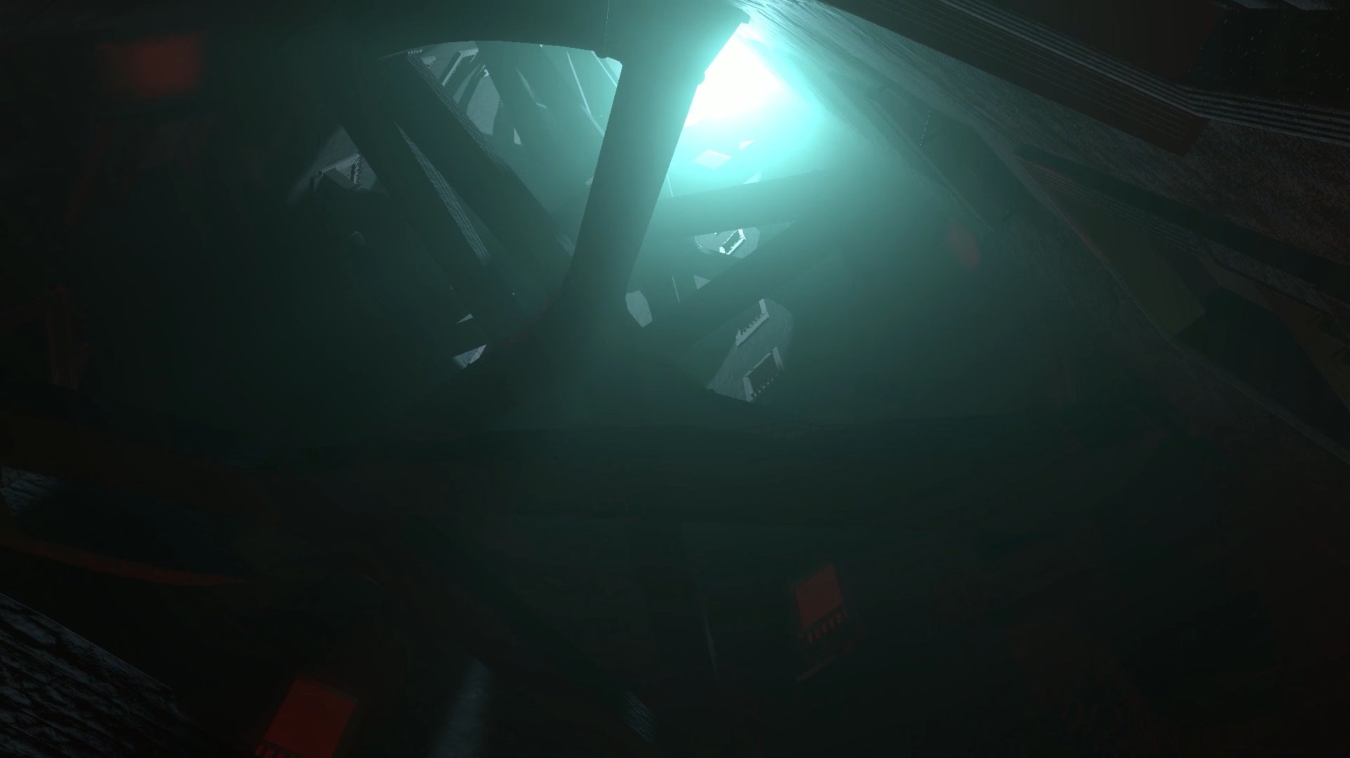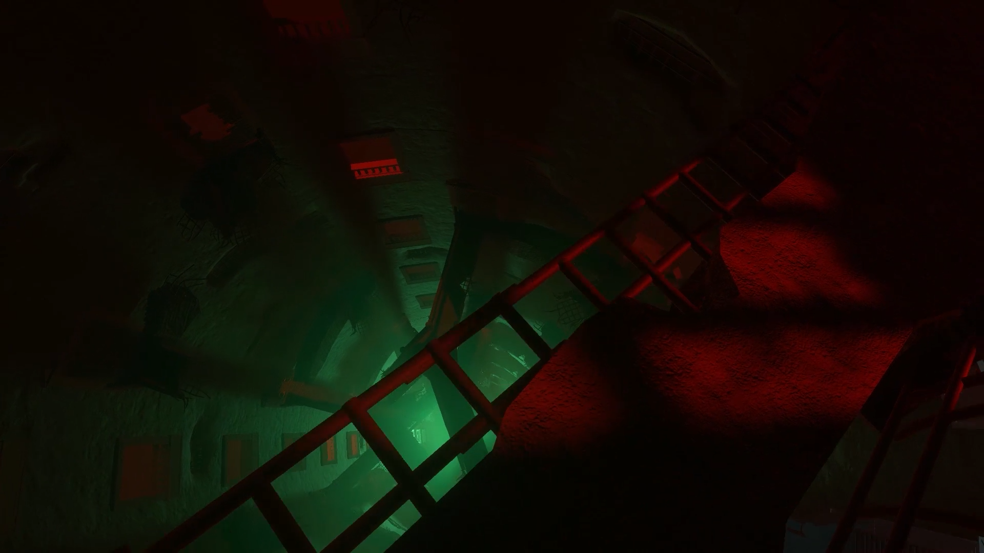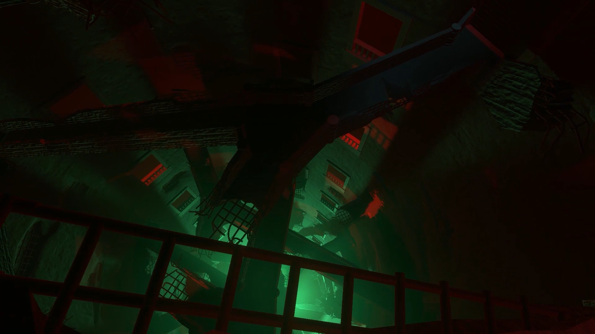 The angle at which the passages are layed out, is inspired by the moving staircases in Harry Potter. Lighting plays a significant role in shaping the atmosphere, with bright hopeful colours at the top and more disturbing unnatural hues for the lower areas. The sound design reinforces the feeling of unease, with eerie cries growing more frequent and pronounced as the protagonist descends further.